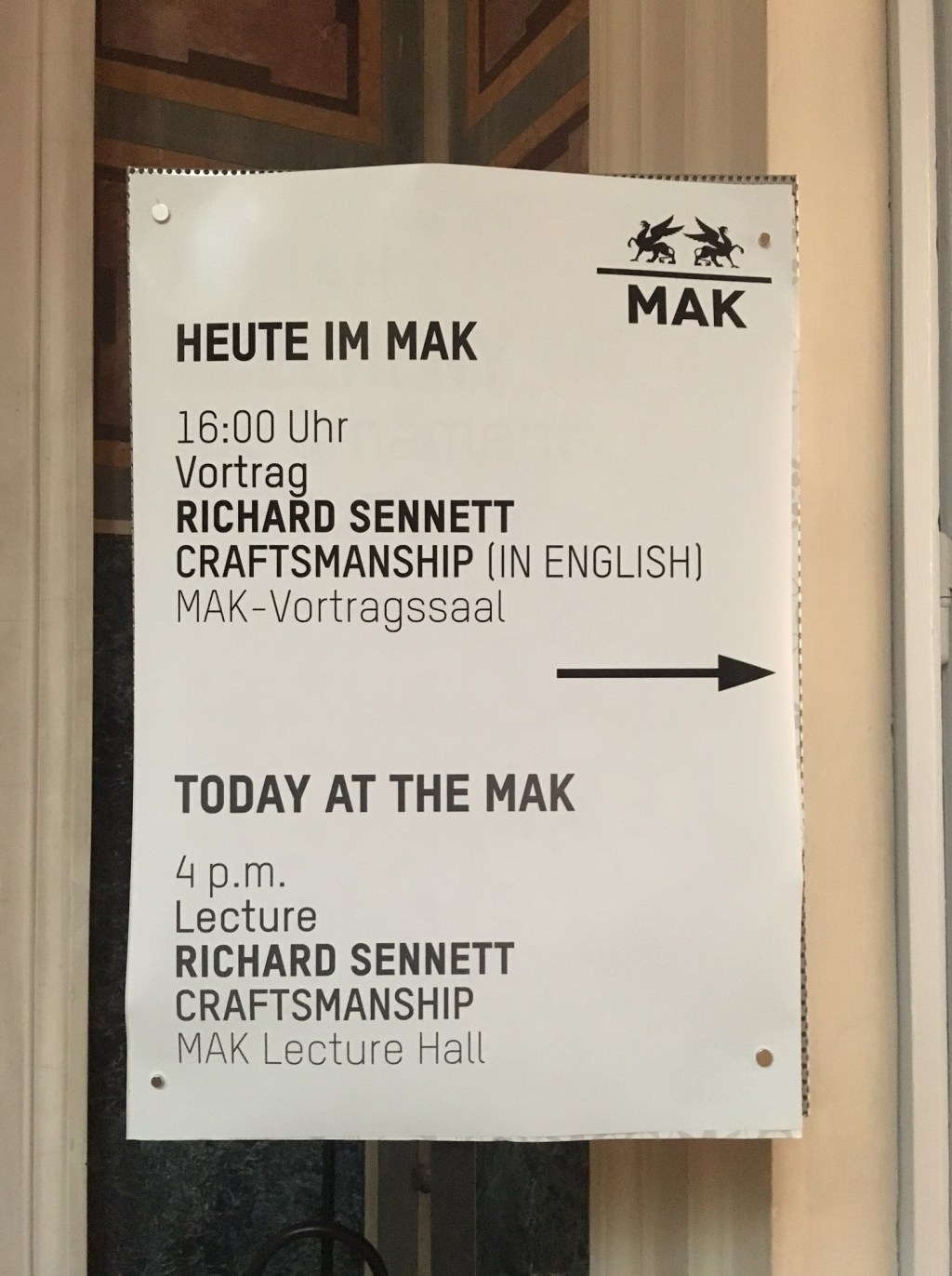 Dieser Vortrag bildete den Auftakt für die kommende Ausstellung handWERK. Tradiertes Können in der digitalen Welt, die ab 14. Dezember im MAK zu sehen sein wird.