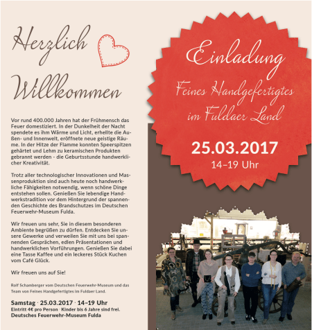 Unter dem Motto „Feines Handgefertigtes im Fuldaer Land“ präsentieren am Samstag, dem 25.03.2017, ab 14 Uhr sieben HandwerkerInnen […]